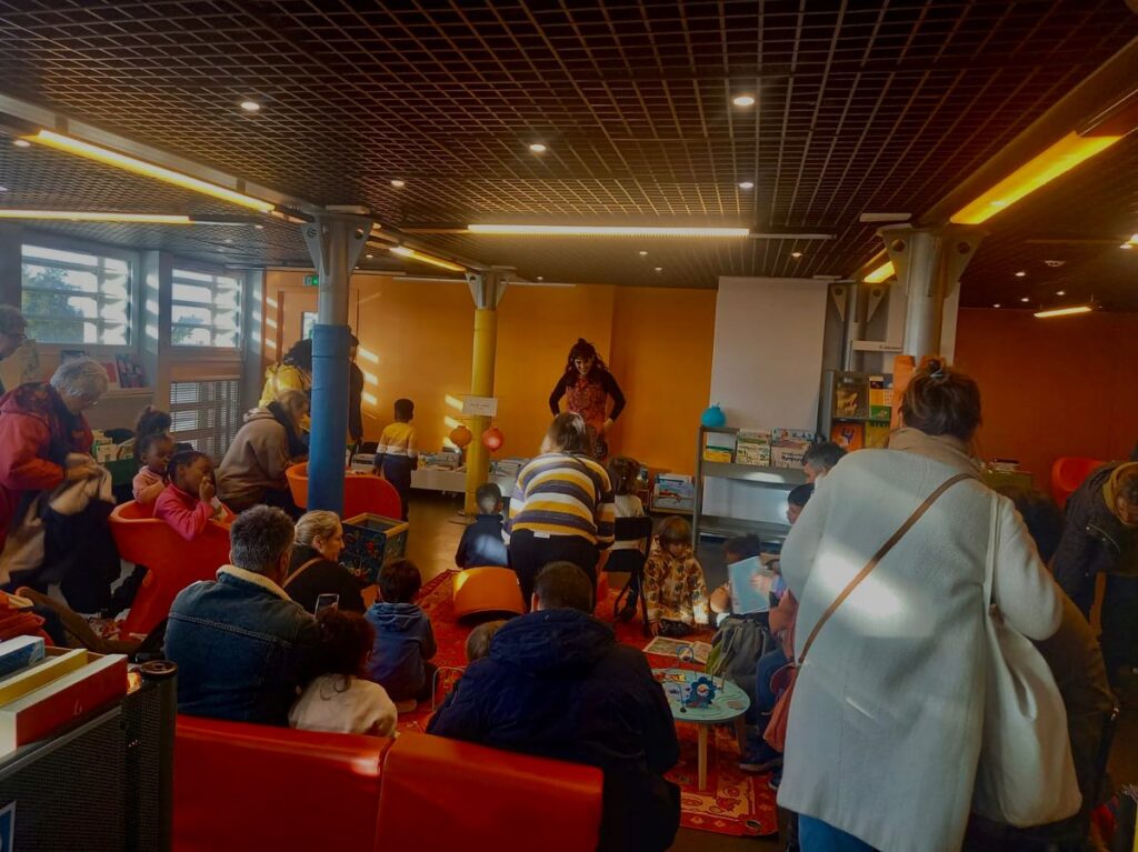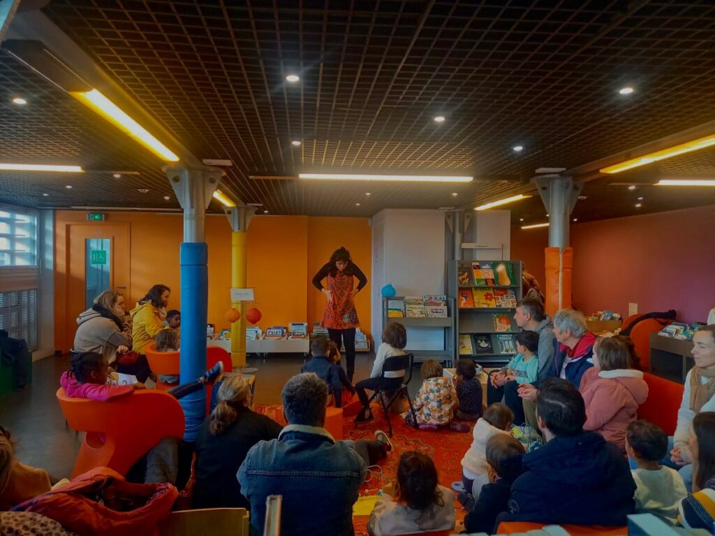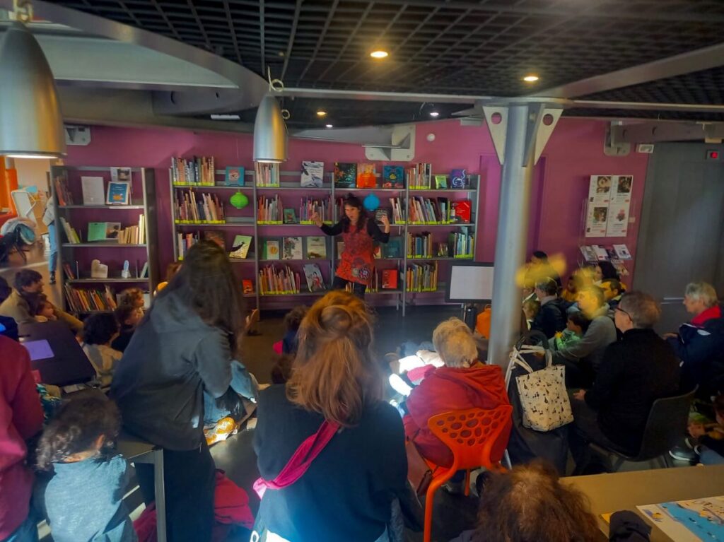 Quelle bonheur de faire mijoter le Chaudron des Contes de Nature à la médiathèque de Pornic ce matin, réveiller les contes d’oiseau et d’océan, Lolerme et Yann, et PicPic et Dilili des contes d’amour sauvage qui racontent le sacré de nos vies, la puissance qui coule dans nos veine, la beauté de nos cœurs en perpétuel mouvement, quel bonheur de raconter nos racines qui puisent si profondément dans la terre depuis que l’être est être depuis que l’hêtre est hêtre ou depuis que lettre est lettre ?… Trêve de plaisanteries, cela a tant de sens pour moi de raconter au plus de chez moi, dans ma terre d’accueil, terre d’arbres et d’océan, avec celles et ceux proches de ma maison, pour les familles nées dans ces chemins familiers et universels, … dans la nudité de la parole, dans la magie de la parole sans autre lumière que celle du soleil du matin, avec l’horizon de la mer par la fenêtre, sans autre énergie que celle de mon corps et de ma voix, et celle magnifique d’un public doux et attentif, gourmand d’histoires, encore, et encore.
